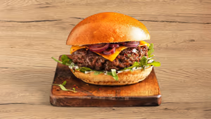 Vores burgere er med hjemmelavet dansk hakkebøf på hele 200g